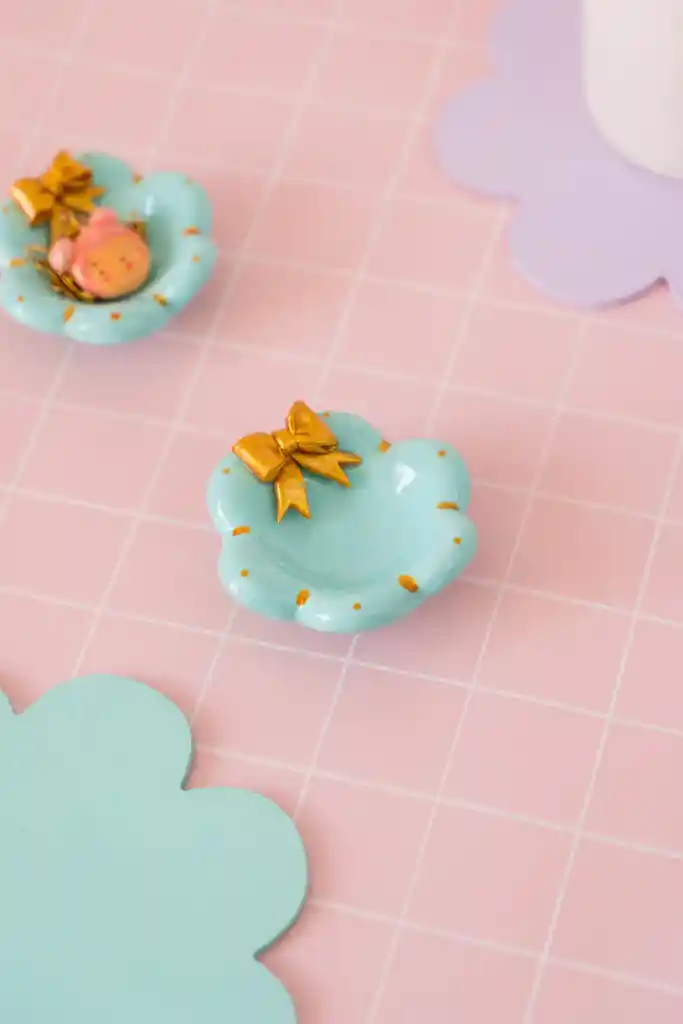 Joyero Cinta Flor Floreciendo en tu espacio, este delicado plato joyero en forma de flor, es el lugar perfecto para guardar pequeños tesoritos. Tus amuletos favoritos descansarán como si estuvieran en un jardín encantado. • Deja tus anillos y collares al final del día. • Úsalo como un pequeño altar de belleza en tu velador o escritorio. • Regálalo a alguien especial. Medida: 7cm aprox, porcelana fría con terminación en resina.