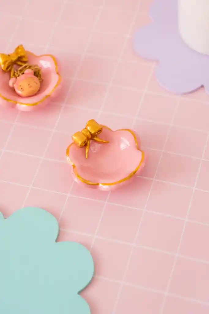 Joyero Cinta Flor Floreciendo en tu espacio, este delicado plato joyero en forma de flor, es el lugar perfecto para guardar pequeños tesoritos. Tus amuletos favoritos descansarán como si estuvieran en un jardín encantado. • Deja tus anillos y collares al final del día. • Úsalo como un pequeño altar de belleza en tu velador o escritorio. • Regálalo a alguien especial. Medida: 7cm aprox, porcelana fría con terminación en resina.
