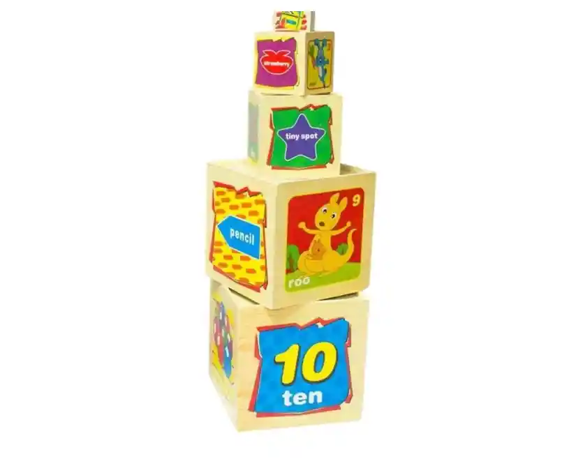Set Didáctico de 10 Cubos de Madera Multicolor para Niños de 3+ Años Descripción de producto: Este set didáctico de 10 cubos de madera es el juguete perfecto para estimular la creatividad y el aprendizaje de los niños mayores de 3 años. Cada cubo está pintado a mano con colores vibrantes y diseños atractivos que capturan la atención de los pequeños. Los cubos varían en tamaño, permitiendo a los niños apilarlos y organizarlos de diferentes maneras, lo que fomenta el desarrollo de habilidades motoras finas y la coordinación mano-ojo. La madera utilizada es de alta calidad, garantizando durabilidad y resistencia al uso diario. Este set no solo es educativo, sino también una pieza decorativa encantadora para cualquier habitación infantil. Usos: El set de 10 cubos de madera es muy fácil de usar y armar. Los niños pueden apilar los cubos uno sobre otro para formar una torre alta, o pueden organizarlos en diferentes patrones y estructuras según su imaginación. Este juguete es ideal para actividades de juego libre, donde los niños pueden explorar y experimentar con diferentes formas y tamaños. Además, los cubos pueden ser utilizados para enseñar conceptos básicos de matemáticas, como contar, sumar y restar. Los padres pueden participar en el juego, ayudando a los niños a identificar colores y formas, lo que convierte este set en una herramienta educativa integral. Resistencias y características: Este set de cubos de madera es extremadamente resistente y duradero, diseñado para soportar el uso rudo de los niños pequeños.