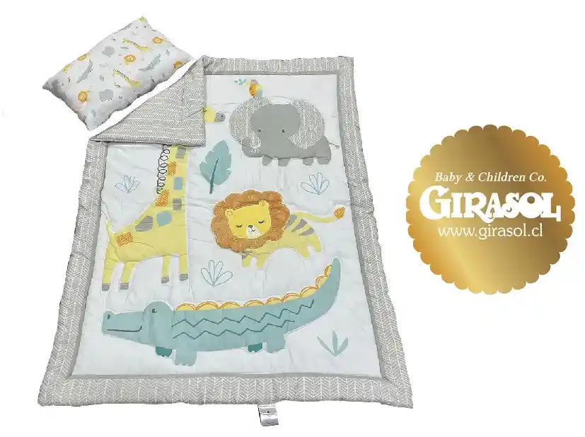 dale a la habitación de tus pequeños un toque de magia y confort con este maravilloso y cálido set de cubrecama, y cojín infantil, diseñado para cuna corral. fabricado con materiales suaves e hipoalergénicos. hermoso estampado de tonos cálidos, dónde destacan la templanza y hermosura de la naturaleza y sus animales silvestres, haciendo perfecto juego con cunas de amplio espectro. cubrecama acolchado y quilteado de 89 x 114cm medida apta para cuna corral. Incluye cojín estampado del juego de 30 x 45cm