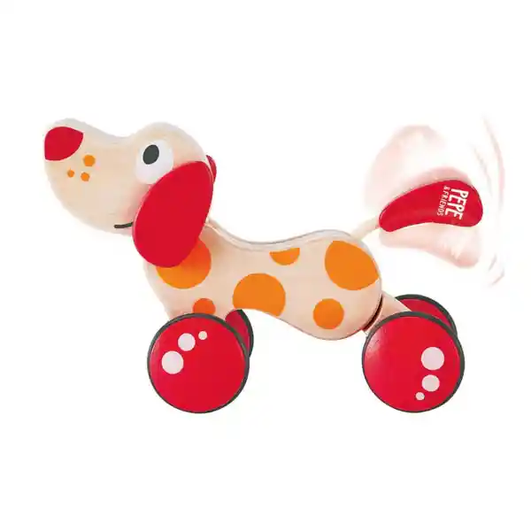 Juego de arrastre de madera con diseño de perro y cordel que al trasladarse mueve la cola. Favorece el desarrollo de la coordinación, la movilidad y la actividad física de los niños/as. Dimensiones: 22 x 9,2 x 16,2 cm. Edad: + 1 año. Material: Madera.