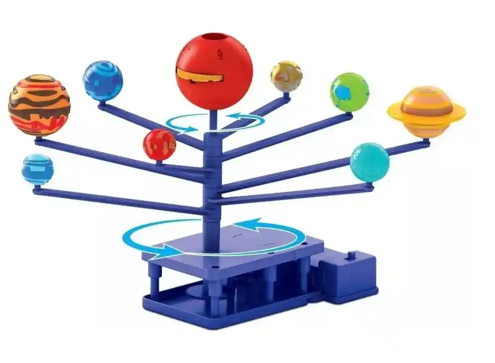 Una manera entretenida y didáctica para aprender sobre ciencia, la rotación de los planetas que componen el sistema solar, su ubicación y forma mediante el ensamble y pintura de este entretenido esquema de rotación planetaria. Además, incluye un sistema luminoso que proyecta imágenes de los planetas. Aconsejable para niñ@s mayores de 8 años de edad. Regale a sus hijos juguetes que les entreguen aprendizaje a través del juego. Necesita 2 pilas AA y 3 AG3 no incluidas. No incluye pinturas ni pinceles.