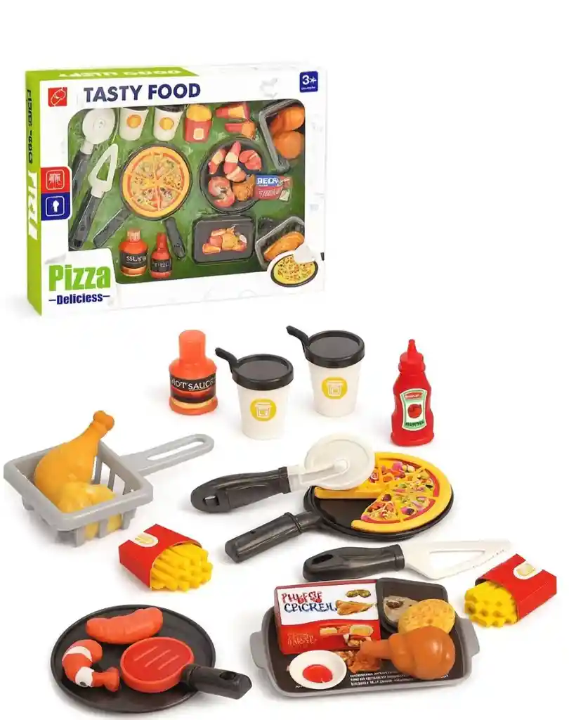 Diversión y aprendizaje en un solo juego! Este set de comida didáctica está diseñado para que los niños desarrollen su imaginación, coordinación y habilidades motoras mientras juegan a ser pequeños chefs. Las piezas están fabricadas en plástico resistente y seguro, con uniones que permiten armar, cortar y volver a montar cuantas veces quieran. El corte se realiza fácilmente con los utensilios incluidos, fomentando el juego creativo y la simulación de situaciones reales de cocina. Características: • Variante Pizza o Sushi para elegir según el gusto del niño. • Piezas fáciles de encajar y separar. • Colores llamativos que estimulan la percepción visual. • Ideal para juego simbólico y de imitación. • Material plástico seguro y resistente, libre de BPA. Contenido del set: • Variante Pizza: Porciones de pizza, cortador, espátula y accesorios. • Variante hamburguesa Beneficios: • Fomenta la coordinación mano-ojo. • Estimula la creatividad y el juego imaginativo. • Ideal para actividades en casa, jardín infantil o como regalo educativo.