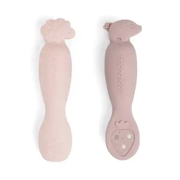 Set de cucharas suaves diseñadas para que tu pequeño explore la comida a su propio ritmo. Incluye una cuchara para sumergir y otra para servir, con formas y texturas ideales para que las manitos pequeñas puedan agarrarlas y usarlas con facilidad. Fabricadas en silicona de grado alimenticio, libres de BPA y sustancias nocivas, son seguras para microondas y lavavajillas. Resistentes y duraderas, están hechas para soportar el uso diario. En suaves tonos rosa y decoradas con las adorables figuras de Pigee y Sheepy, aportan un toque moderno y divertido a las horas de comer. Material: 100% silicona de grado alimenticio. Medidas: 10cm x 2,7cm x 2,5 cm.