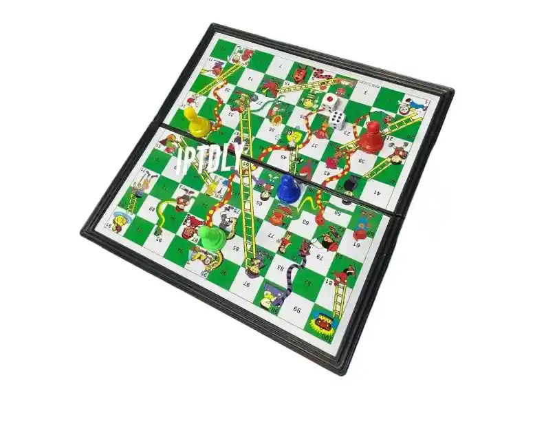 UN JUEGO PARA 2-4 JUGADORES Contenido Piezas de juego: 4 fichas de colores. 2 dado. JUGAR Medida : 24cm x 24cm Los jugadores comienzan en el cuadro 1 y terminan en el cuadro 100. Por turnos, lanzan los dados y mueven su ficha el número de espacios que se muestran en los dados. Si aterrizas en la boca de una serpiente, la pieza se "traga" y baja por la altura de la serpiente. Si aterrizas en la parte inferior de una escalera, subes hasta la cima. El ganador es el primer jugador en llegar a 100.