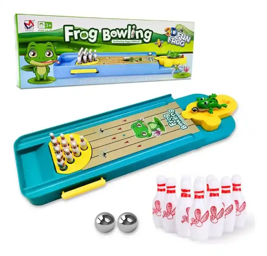 Lleva la emoción de los bolos a casa con este adorable y compacto juego de Mini Bolos de Rana! Diseñado para los más pequeños, este juego no solo es muy divertido, sino que también ayuda a desarrollar la coordinación mano-ojo y la concentración.CARACTERÍSTICAS:- Material duradero y resistente : Construido para durar, este juego de bolos mini resiste el uso frecuente y garantiza horas de entretenimiento.- Juego de estrategia interactivo: Promueve el pensamiento lógico y la competencia amistosa entre padres e hijos con este juego de bolos mini.- Diseño compacto y portátil:Su tamaño mini hace que este juego de bolos sea ideal para cualquier espacio, perfecto para jugar en cualquier habitación.- Regalo educativo y divertido:Este juego de bolos mini no solo es entretenido, sino que también mejora las habilidades motoras y la coordinación.- Edad Recomendada: Apto para niños y adultos, este juego de bolos mini estimula la interacción familiar y el juego estratégico.- Fácil de jugar: Este juego de bolos de mesa no requiere montaje, con una superficie lisa y es fácil de instalar y jugar. Lo que necesitas hacer es colocar los 10 mini pines de boliche hacia arriba, colocar la rampa en la dirección correcta y luego disparar la pelota. La base de plástico estable, las bolas de boliche de alta calidad, los pines adicionales y la bola adicional aumentarán el sabor del juguete.