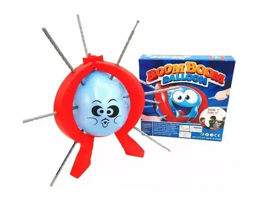 Cuidado, no puedes saber cuándo el globo explotará! Mira como el globo cambia de forma a medida que presionas al globo con las varillas! Un click más y podrías hacer que el globo explote!. El jugador que revienta el globo pierde la jugada. Intenta no ser la persona que haga estallar el globo. Perfecto para niños de todas las edades, este juego de globos Boom Boom es perfecto para jugar en tu próxima fiesta de cumpleaños. Medidas: 27x27x6 cm caja.