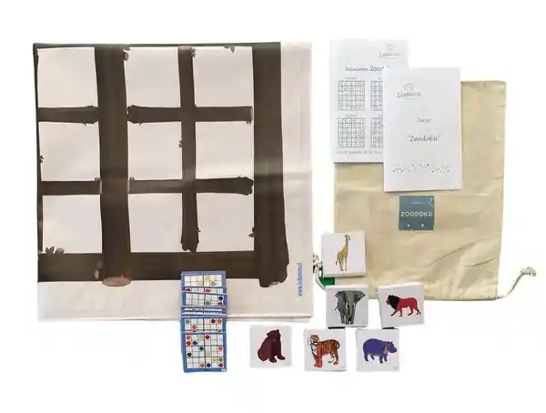 Juego Sudoku Con Animales y Colores Para Desarrollar el Razonamiento Lógico-Matemático. Los Niños Deben Completar Los Espacios Del Tablero Con Los Animales Del Color Correcto Sin Repetirlos en Filas Columnas y Cuadrillas. Incluye: Tablero de 1 Mt x 1 Mt 36 Tarjetas Con Animales en 6 Colores Diferentes 22 Tarjetas Guías Con Puzzles Predeterminados y Soluciones. Para Niños Desde 6 Años
