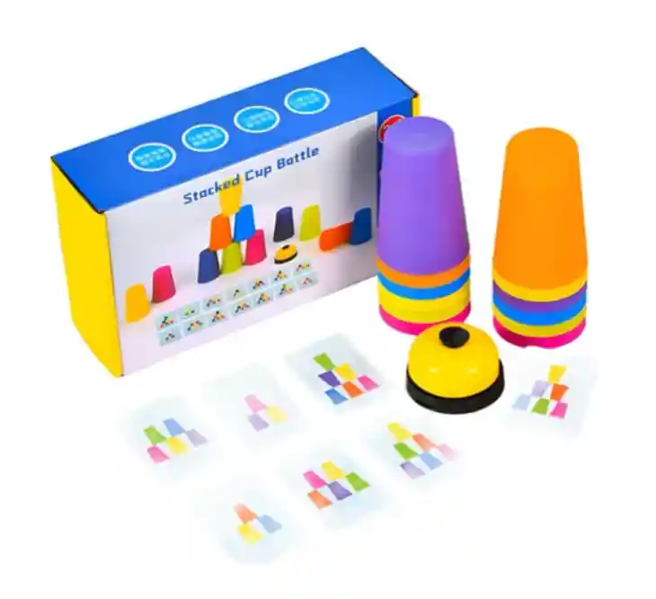 Vasos apilables: el Speed Cup mide unos 10 cm de altura. - Fácil de usar, muy adecuado para los amantes de los juegos apilables. - Ejercicios de apilamiento: este es un ejercicio increíble para el estado físico, la agilidad, la concentración y la velocidad. - Muchas personas ya han experimentado la diversión de apilar ejercicio. - Material duradero: estos vasos apilables están hechos de material ABS duradero que cumple con los más altos estándares de seguridad. - Fomenta la coordinación mano-ojo: estos juguetes apilables pueden mejorar la coordinación y la velocidad mano-ojo, y los vasos que se apilan rápidamente pueden ayudar a entrenar el cerebro para los deportes y otras actividades. Especificaciones: Material: ABS Tamaño de la copa: 7 x 10 cm Incluye: 12 vasos para apilar cartas 1 timbre