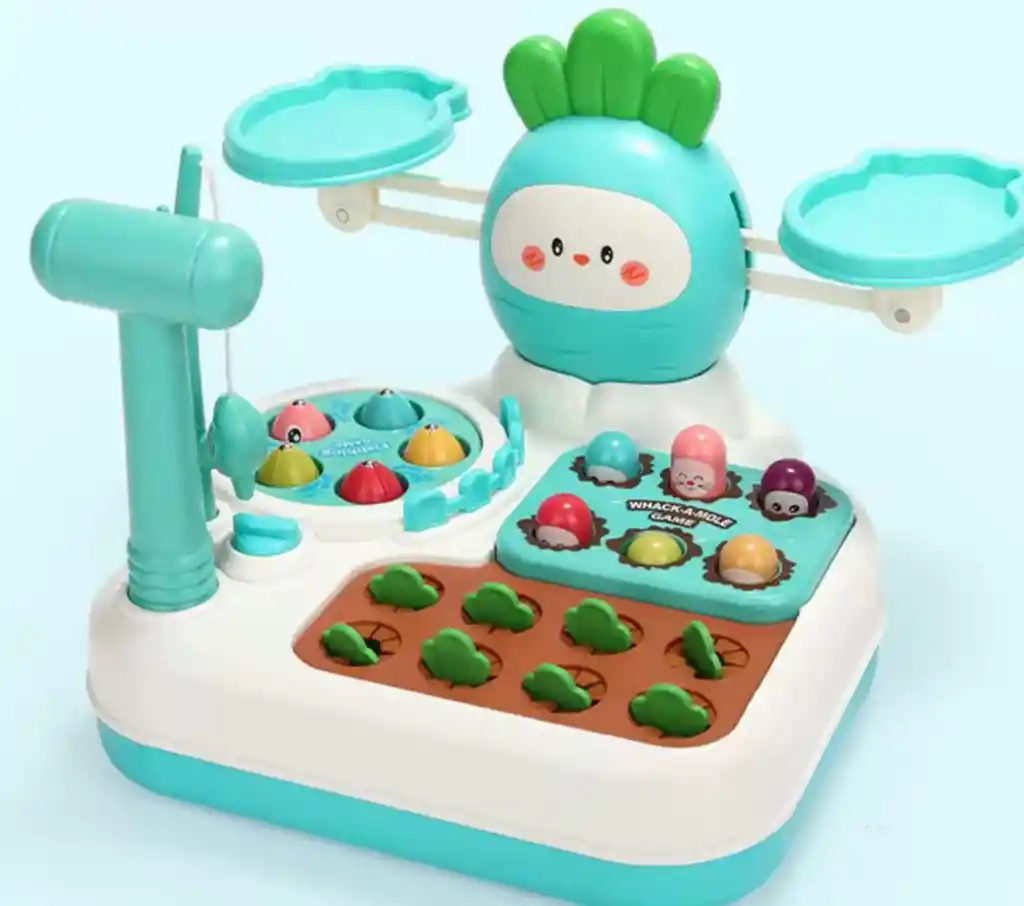 Diversión y aprendizaje en un solo juguete! Este set educativo está diseñado para estimular la coordinación, la motricidad fina y el desarrollo sensorial de los más pequeños a través de actividades interactivas y coloridas. Ideal para niñas y niños en etapa temprana de aprendizaje. Características destacadas: • Juego de pesca magnética: estimula la concentración y precisión. • Mini balanza: ayuda a entender conceptos básicos de equilibrio y peso. • Martillo con zanahorias: mejora la coordinación ojo-mano de forma divertida. • Colores vivos y formas llamativas que captan la atención. • Material resistente, no tóxico y seguro para niños. • Fácil de armar y transportar. Beneficios para el desarrollo infantil: • Fomenta la coordinación y la motricidad fina. • Estimula habilidades cognitivas y sensoriales. • Desarrolla la atención y la paciencia. • Promueve el juego libre y el aprendizaje temprano. Perfecto para: • Regalos de cumpleaños • Baby showers • Jardines infantiles y guarderías • Juegos en familia Incluye: • 1 base de juego interactiva • 1 caña de pescar magnética • 1 martillo • Zanahorias y figuras magnéticas • Mini balanza Un juguete educativo, seguro y divertido que acompaña el crecimiento de tu pequeño mientras aprende jugando