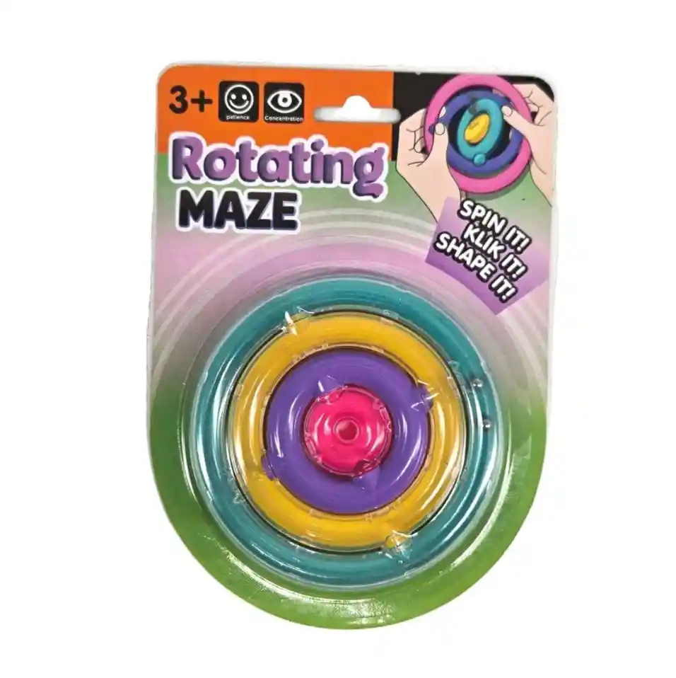 Regulación emocional: el movimiento repetitivo y el reto de guiar la bolita ayudan a disminuir la ansiedad y mejorar la calma. Motricidad fina: al girar y manipular el juguete se ejercitan los dedos y la coordinación mano-ojo. Atención plena (mindfulness): el foco en el movimiento de la bolita favorece la concentración y la relajación. Beneficios Educativos: Resolución de problemas: los niños deben pensar estrategias para guiar la bolita hasta el centro o la salida. Orientación espacial: desarrolla la comprensión de giros, direcciones y trayectorias. Estimulación cognitiva: potencia la memoria de trayectorias y la planificación. Juego desafiante y divertido: fomenta la paciencia y la perseverancia.