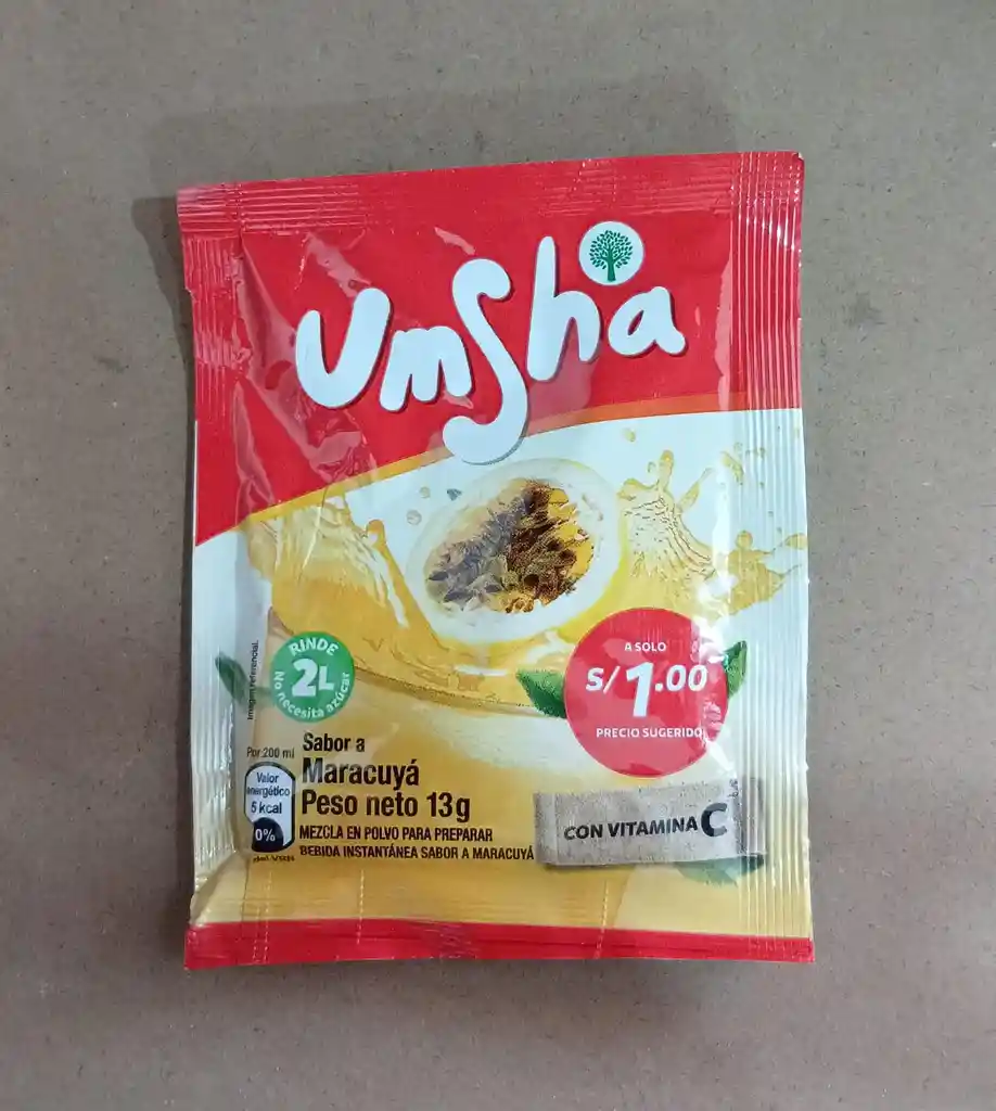 Jugo en sobre maracuya marca umsha 13g con vitamina C