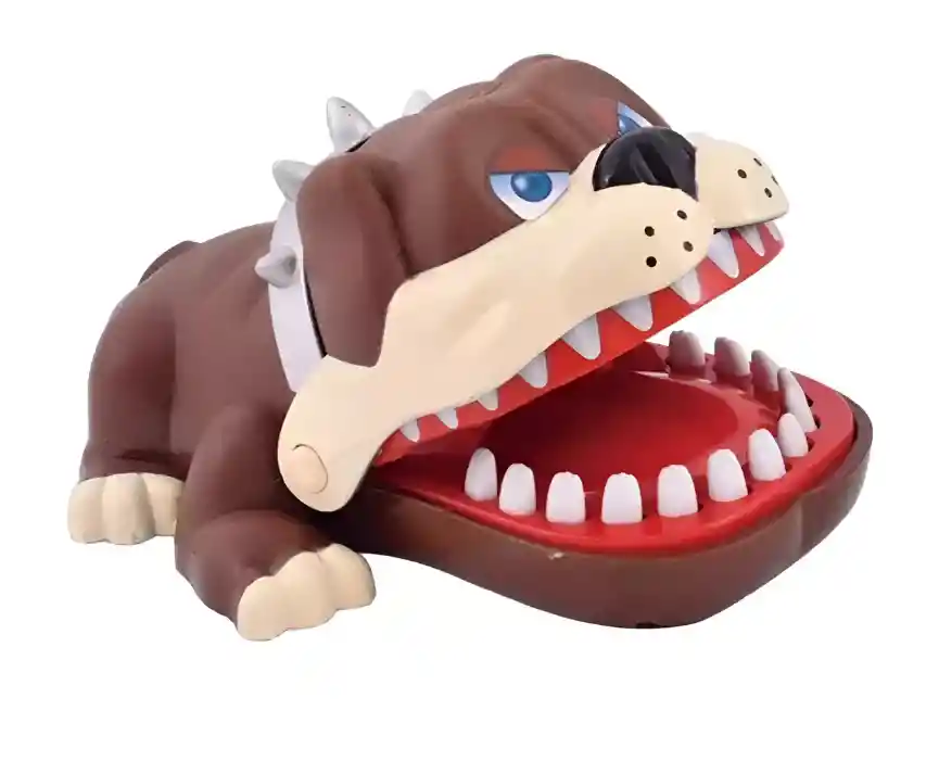 Disfruta del divertido Juego del perro BULLDOG dentista con tus amigos y familia! Abre la boca del Bulldog y comienza a presionar cada diente, en cualquiera puede estar la caries que le dará dolor y cerrará su boca rápidamente! Saca tu dedo antes de que este sea mordido y serás el vencedor. Cantidad: 1 Bulldog
