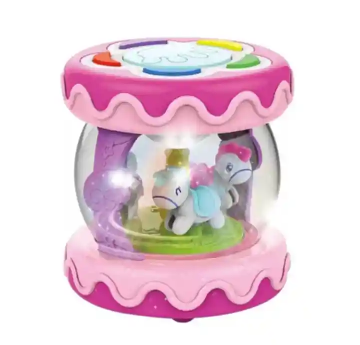 Este producto es un interesante juguete de tambor de mano de carrusel de dibujos animados. Tiene múltiples formas de juego. Con Luz de lámpara y función de música, puede ayudar a desarrollar la capacidad auditiva y mejorar el desarrollo de la inteligencia, divertido y fácil de jugar. Un buen juguete para niños, muy interesante. Características -Material: plástico. -Tamaño: aproximadamente 11.00X11.00X10.00cm - 3 pilas AAA (no incluidas). -Utilizando material plástico resistente al desgaste y a las caídas, no es fácil de dañar y romper. -Bordes y esquinas lisos, sin rebabas, seguro de agarrar, interesante para jugar. -Juguete de tambor de mano de carrusel, dibujos animados y divertido, atrae a los niños a jugar, muy divertido de jugar.