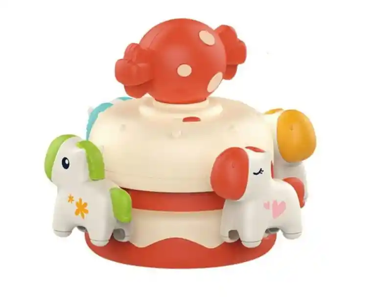 Juguete atractivo: este juguete para bebé que presiona y gira está diseñado para atraer la atención de su bebé. La función de pelota que rebota ayuda a desarrollar la atención y la concentración de su bebé. Juego interactivo: Al presionar hacia abajo, el carrusel gira mientras la pelota, brindando una experiencia de juego divertida e interactiva para el bebé. Desarrollo de habilidades motoras: el movimiento giratorio del juguete del carrusel no solo entretiene, sino que también ayuda a ejercitar la coordinación ojo-mano y las habilidades motoras finas. Regalo: Este juguete para bebé tiene el tamaño adecuado para que las manos pequeñas lo agarren fácilmente, regalo ideal para bebés de 6 meses o más. Material. Hecho de material ABS, este juguete de carrusel prensado es adecuado para bebés Sin garantí