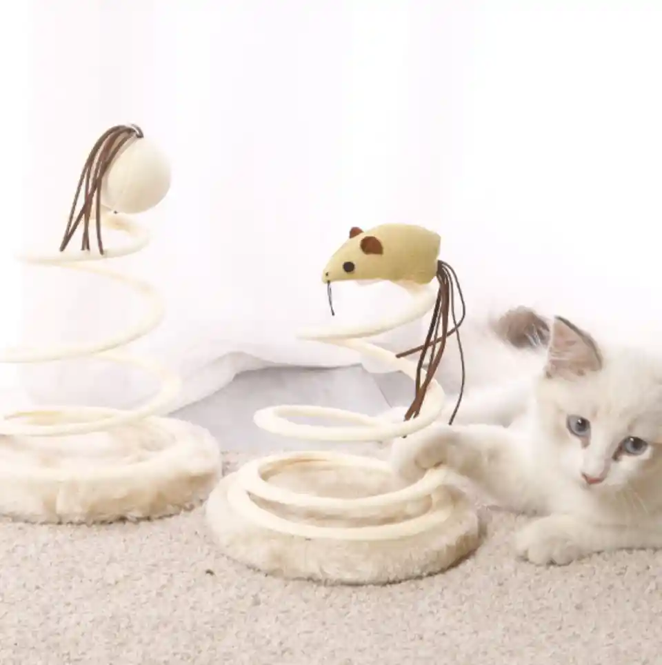 Juguete redondo de rascador de felpa :La base está cubierta de material suave de felpa que proporciona comodidad para los gatos. El juguete de peluche es de tela de algodón y lino, tu gato puede moler sus garras. El Juguete Mufti-funcional para gatos satisface los impulsos naturales de tu gato. No se puede empujar fácilmente hacia abajo por los gatos. El mejor estilo atrae a los gatos La parte superior de este juguete para gatos interactivo tiene la forma de un ratón para atraer la atención de los gatitos, haciendo que estén más interesados en él. Ayuda a que tus gatos se mantengan activos y hagan más ejercicio. El resorte del cable: Con el diseño de resorte de alambre, los juguetes para gatos son más fuertes y duraderos. Resorte giratorio con buena resistencia. Diseño Plegable: Nuestro juguete para gatos ahorra espacio y puede alcanzar una altura de 20cm cuando se despliega, por lo que el gato necesita ponerse de pie para alcanzar el ratón en la parte superior. Medidas 21cm * 15cm * 21cm. Peso 215 Grs