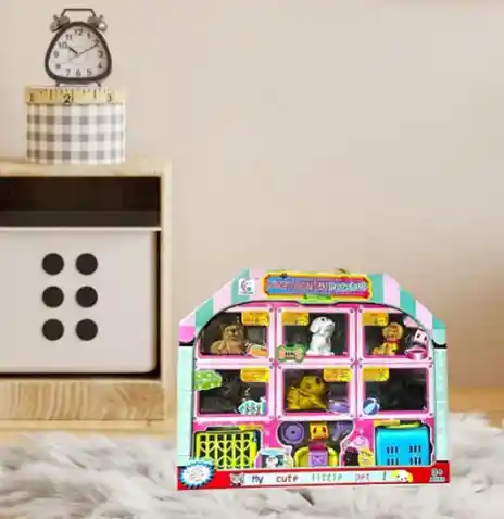 juguete para amantes de los perros y gatos, incluye figuras de 3 perros y 3 gatos, maletas de viaje y caja de arena. Ideal para el entretenimiento de los más pequeños.