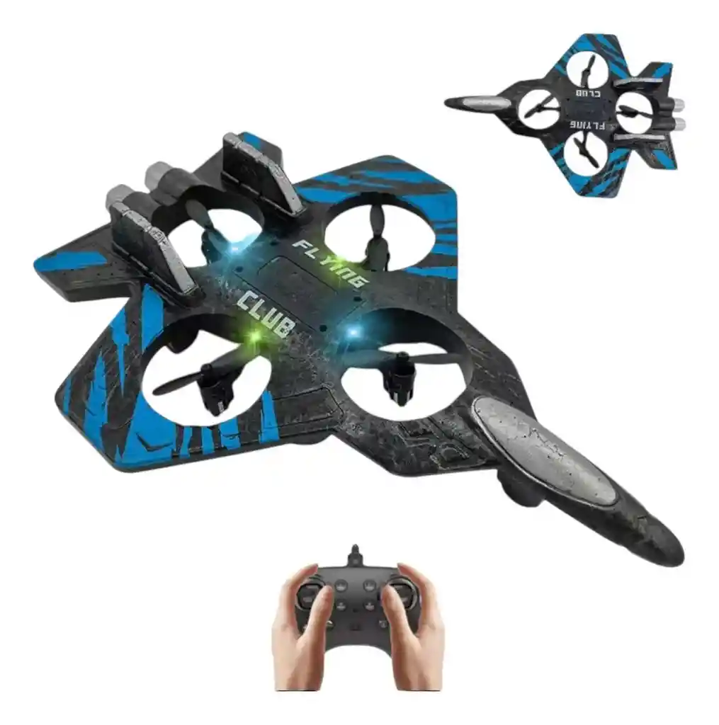 Juguete Avión Acrobático EVA Resistente a Golpes Este avión de control remoto es ideal para quienes buscan una experiencia de vuelo divertida y segura. Su diseño ligero y resistente lo hace perfecto tanto para niños como para adultos que disfrutan de los juguetes voladores. -Fabricado con espuma EVA liviana y flexible, resistente a impactos y caídas. -Diseño de ala fija que proporciona un vuelo estable y fácil de controlar. -Equipado con luces LED de colores, ideal para vuelos nocturnos. -Funciona con una batería recargable (incluida). -El control remoto utiliza 3 pilas AAA (no incluidas). -Incluye 2 hélices de repuesto, cable de carga USB y control remoto. Viene en un empaque atractivo. Listo para usar y disfrutar al aire libre. Aviso legal * La edad mínima recomendada para utilizarlo es 8 años.