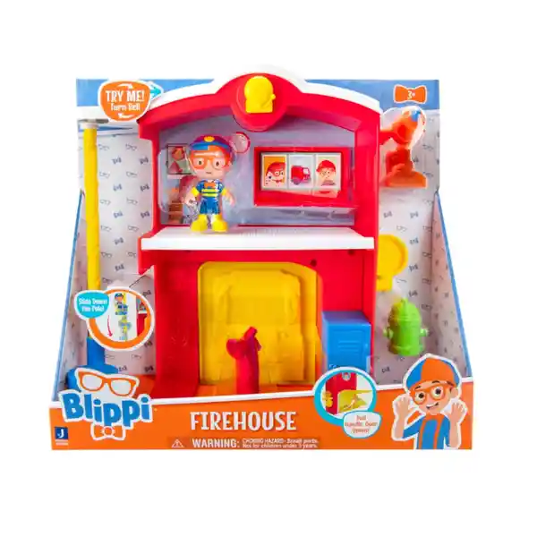 Entrena Para Ser un Héroe Con Blippi y su Firehouse Playset! Cuando Hagas Sonar la Campana de Alarma Toma al Bombero Blippi de su Cama Plegable y Gira el Poste de Bomberos Para Comenzar su Aventura. Ayúdalo a Prepararse Junto a su Casillero Con un Extintor Antes de Abrir el Garaje. Una Vez Que Haya Localizado el Fuego Saque su Manguera Colóquela Junto a la Boca de Riego y Ayúdelo a Apagar el Incendio. El Juego Incluye Una Figura Exclusiva de Bombero Blippi de 3 Pulgadas Con un Casco Especial Para Bomberos. Agregue Este Juego a su Colección y Busque Otros Emocionantes Juguetes Blippi! Incluye: (1) Figura Exclusiva de Blippi de Bombero de 3 Pulgadas (1) Estación de Bomberos Con Poste de Fuego (1) Accesorio de Manguera Para Disparar Agua de Simulación (1) Accesorio de Boca de Incendios (1) Accesorio de Extintor de Incendios.