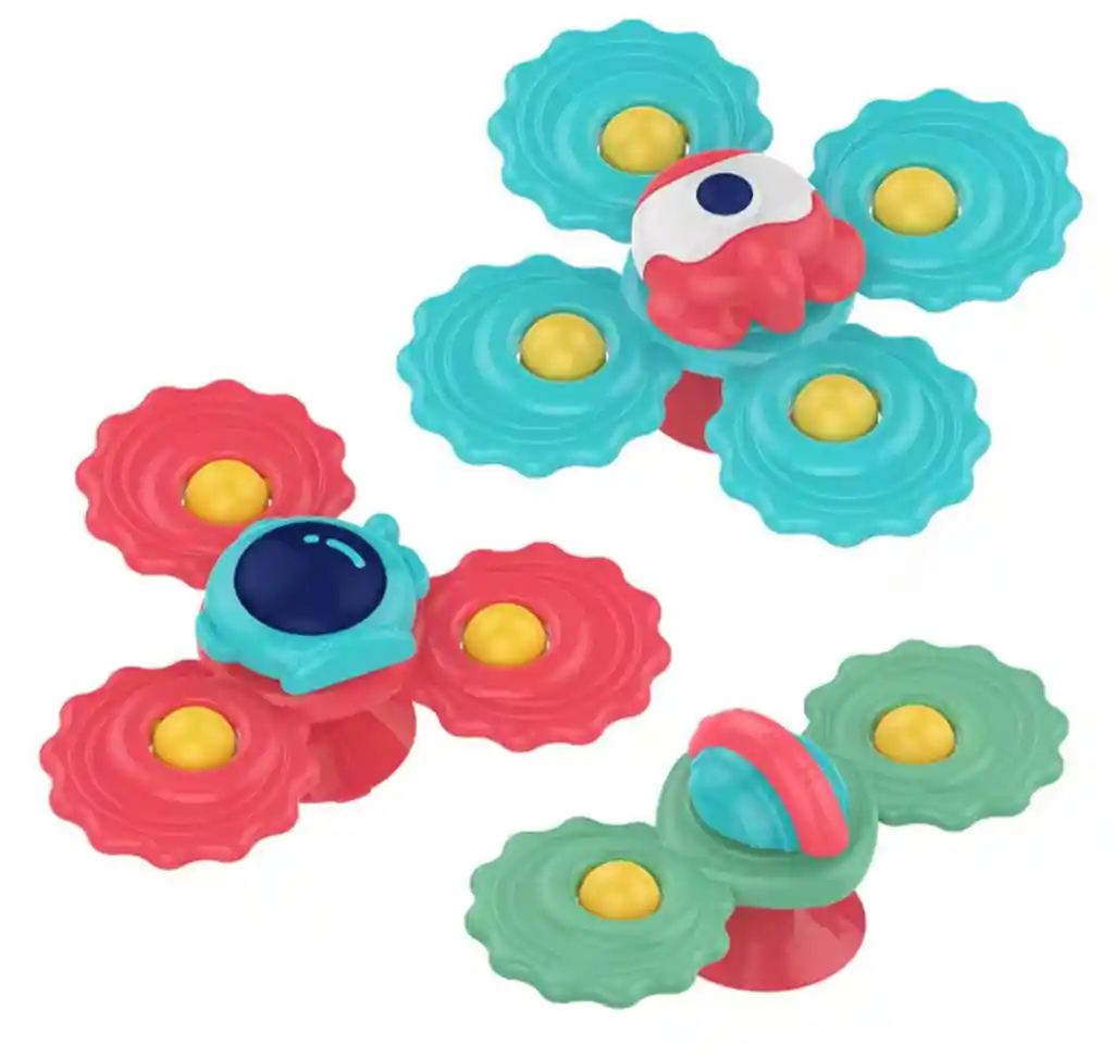 Escenarios multiusos: nuestros juguetes giratorios para bebés tienen un fuerte ventoso de goma de succión, se puede pegar en cualquier superficie plana y mantenerse bien, y giran muy rápido. como una mesa de comedor, ventana de coche o bañera. Colócalo a la bañera y se convierte en un divertido juguete de baño en cuestión de segundos. Colócalo a la ventana del coche y se convierte en un juguete de ventana para niños pequeños. En un viaje largo de vuelo, necesitarás un juguete para mantener al niño ocupado en el avión. Regalos creativos para bebé: el divertido juguete giratorio es una buena idea de regalo para bebés de 18 meses en adelante. Perfecto para cumpleaños, Navidad, Pascua, Año Nuevo, Día de San Valentín, etc. ¡No pierdas ninguna oportunidad de sorprender a tus bebés! Libera tus manos: pon un juguete giratorio en el refrigerador, banco o cochecito para que los niños tengan algo con lo que jugar mientras cocina