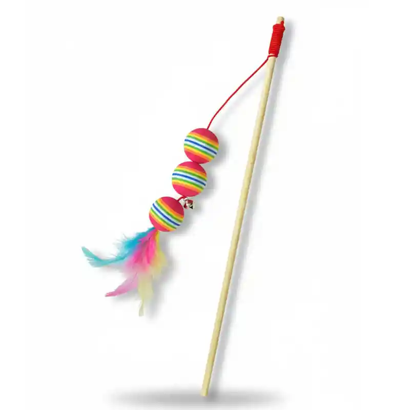 Juguete interactivo para gatos que convertirá cada día en una aventura emocionante para tu felino. Diseñado con una varilla tipo caña de 40 cm, este juguete es perfecto para que los gatos saltarines puedan satisfacer su instinto de caza y ejercicio. Su estructura combina pelotas goma y madera, asegurando durabilidad y resistencia en cada sesión de juego. Emite sonidos que atraerán la atención de tu mascota, proporcionando estímulos auditivos que fomentan la curiosidad y el juego activo. Especificaciones: Material: Goma / Madera / Genero. Contenido: 1 caña Juguete Gato.