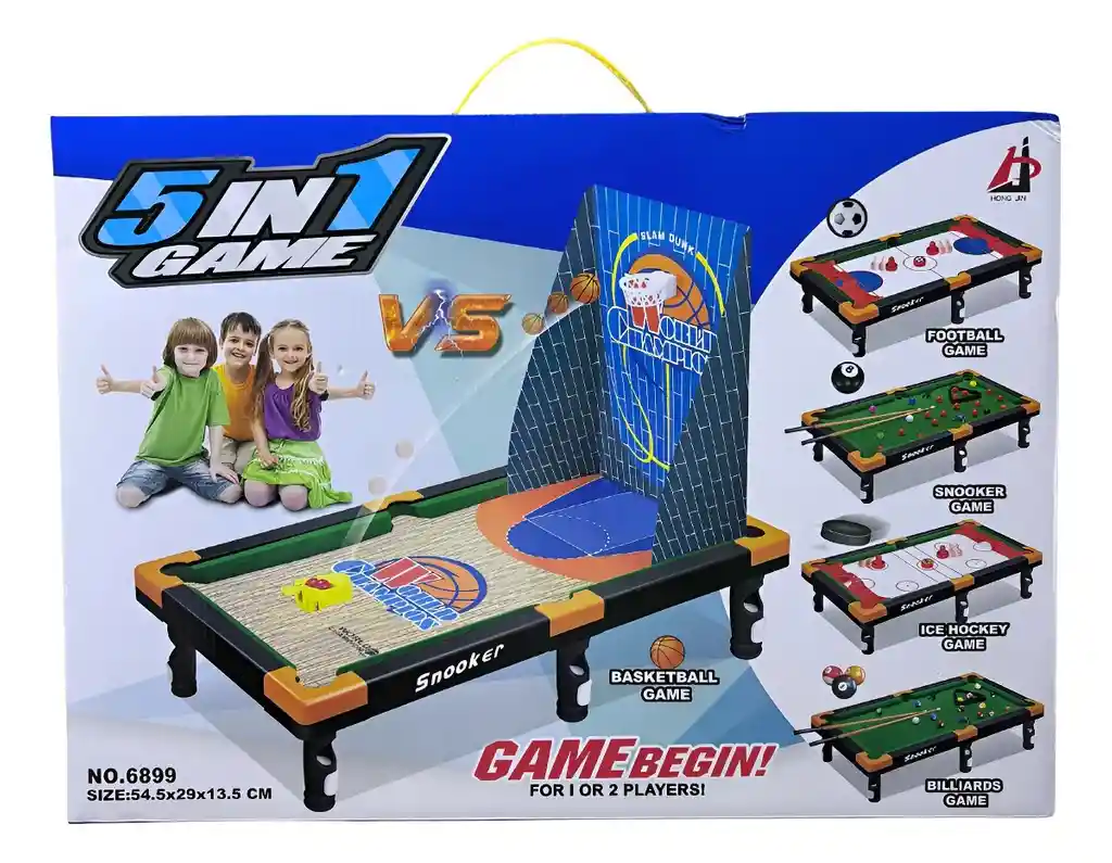 La Mesa de Billar 5 Juegos en Uno es la opción ideal para los más pequeños de la casa, diseñada para ofrecer horas de diversión y entretenimiento. Con un atractivo color negro en su estructura y redes naranjas, esta mesa no solo es funcional, sino que también añade un toque moderno a cualquier espacio. Sus dimensiones de 54,5 cm de largo y 29 cm de ancho la hacen perfecta para habitaciones o áreas de juego, facilitando su uso y almacenamiento. Fabricada con una superficie de juego de madera y un paño de poliéster, garantiza una experiencia de juego suave y agradable. Incluye una variedad de accesorios, como bolas, tacos, una bola de fútbol, snooker ball, hockey ball y un triángulo, permitiendo disfrutar de múltiples juegos en un solo producto. Esta versatilidad asegura que los niños se mantengan activos y entretenidos, fomentando la socialización y el desarrollo de habilidades motoras.