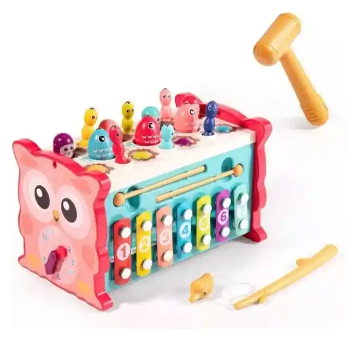 Caja mágica de actividad 8 en 1 para aprendizaje temprano nuestro juguete montessori proporciona 8 formas de aprender y jugar juego golpear al topo xilófono musical juego de pesca, captura gusanos reloj de aprendizaje engranajes giratorios juego de laberinto deslizante juego de encajar figuras y números y ruedas de arrastre Excelente juguete múltiple para mantener a tus niños ocupados y felices Juguete de desarrollo del aprendizaje temprano 8 actividades diferentes en un solo juguete lo que añade más desafío para bebés y niños pequeños Ayuda a desarrollar su coordinación ojo-mano control muscular habilidades motoras finas y capacidad de reconocimiento de color Juguetes interactivos para padres e hijos Pasa tiempo feliz en familia con tu pequeño, juguete perfecto para actividades infantiles o juguetes autistas Juguetes de aprendizaje seguro y duradero Apto para bebés entre 6 meses a 3 años Medidas 21 x 11 x 10.5 cm Incluye Búho montessori Acesorios Sin garantía