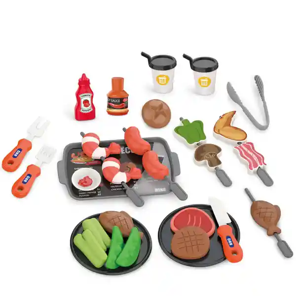 ¡Los asados ya no son solo para los grandes! Con el Set de Parrilla Infantil, los niños podrán vivir su propia experiencia de cocina al aire libre, imitando a los adultos mientras desarrollan su creatividad y habilidades motoras. El set incluye una bandeja con alimentos de juguete como camarones, carne, salchichas, verduras y champiñones, junto a utensilios de cocina (pinzas, tenedores y cuchillo) para una experiencia de juego completa y realista. Fabricado con plástico ABS y polipropileno de alta calidad, este juguete es seguro, duradero y de bordes lisos, pensado especialmente para los más pequeños. Ideal para fomentar el juego simbólico, el trabajo en equipo y la coordinación. Recomendado para niños y niñas mayores de 3 años. Características destacadas: Incluye bandeja, dos platillos, cubiertos y alimentos variados. Colores vivos y diseño realista que estimulan la imaginación. Materiales seguros, resistentes y libres de BPA. Favorece la coordinación mano-ojo y la interacción social. Ideal para juego de roles y cocina creativa.