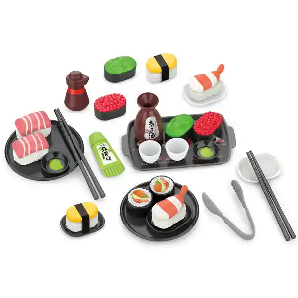 ¡Diversión al estilo japonés! El Set de Sushi Infantil invita a los niños a explorar el mundo de la cocina japonesa mientras desarrollan su imaginación y habilidades motoras. Perfecto para pequeños chefs que aman jugar a cocinar y servir. El set incluye 13 piezas de sushi de juguete, además de palillos, platos, una bandeja para servir, pinzas, wasabi y una botella de salsa de soja de juguete. Todo lo necesario para crear una auténtica experiencia de restaurante japonés en casa. Fabricado con materiales seguros, resistentes y de bordes suaves, este juguete es ideal para fomentar el juego de roles, la creatividad y el trabajo en equipo. Su diseño realista y sus colores vibrantes captarán la atención de los niños, mientras se divierten aprendiendo sobre nuevas culturas. Perfecto como regalo para niños y niñas mayores de 3 años.