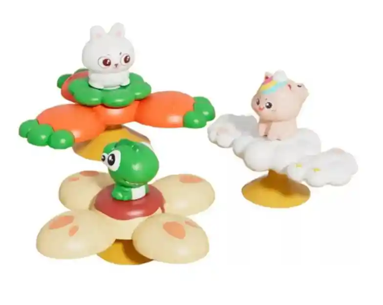 Se puede aspirar en vidrio, paredes, suelos, bañeras, etc. - Es un compañero de juegos para niños y también se puede utilizar como decoración para parques infantiles. - Ideal para regalos de Navidad, incluidos cumpleaños o cualquier ocasión especial para sus hijos. - El pack x3 juguetes giratorio viene en caja sellado.