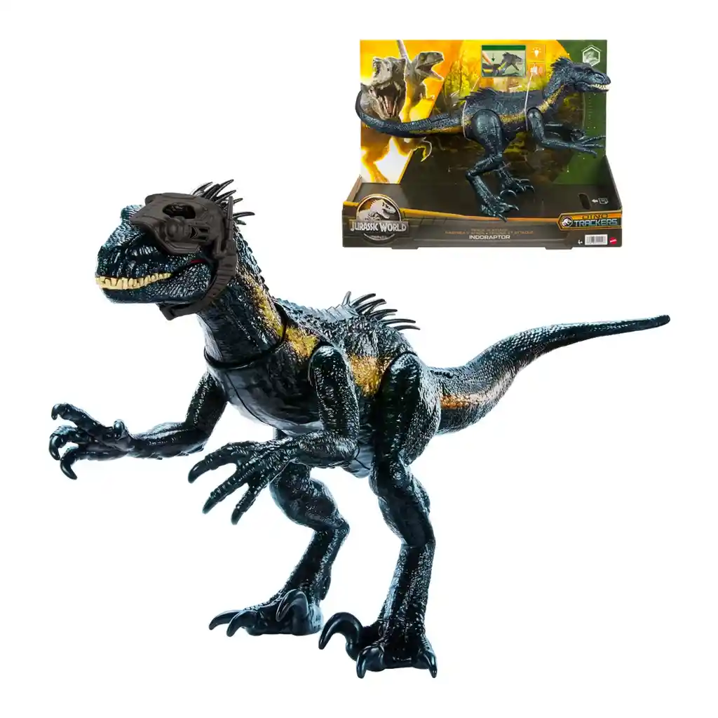Este Indoraptor único e intimidante de Track 'N Attack, inspirado en la franquicia de Jurassic World, tiene 3 funciones de ataque, todas con efectos de luz y sonido. Tiene las enormes garras por las que se conoce a este famoso dinosaurio híbrido y está diseñado con una decoración de color selva con efecto iridiscente. Es una figura impactante que viene con un equipo de rastreo extraíble para la cabeza. Es un excelente regalo para los fans de dinosaurios de 4 años en adelante. Dale “VIDA” a los dinosaurios con la realidad aumentada. Escanea el código de seguimiento oculto en la aplicación gratuita Jurassic World Facts con un dispositivo inteligente compatible (Android o iOS, no incluido) para desbloquear experiencias y juegos de RA. Los colores y las decoraciones pueden variar.