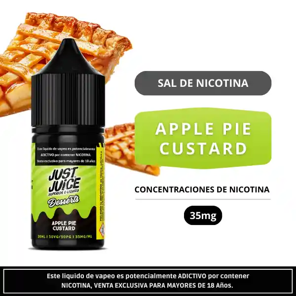 Just Juice Apple Pie Custard Salt 30ml es una sal de nicotina de 30ml que combina manzana horneada con una base de pie y crema custard, creando un perfil postre cálido, dulce y equilibrado. Formulación 50VG50PG, ideal para pods, con 35mg de nicotina.
