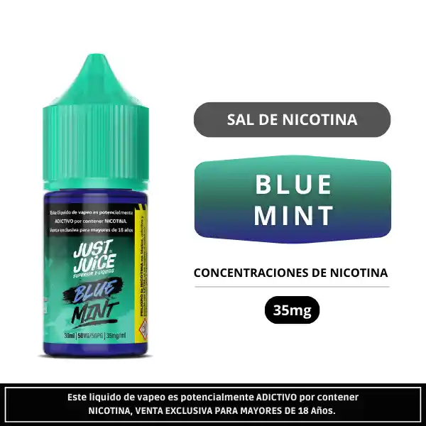 Just Juice Blue Mint Salt 30ml es una sal de nicotina de 30ml que combina frambuesa azul con menta fresca, logrando un perfil equilibrado entre dulzor frutal y frescura limpia. Formulación 50VG50PG, ideal para pods, con 35mg de nicotina.