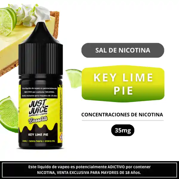 Just Juice Key Lime Pie Salt 30ml es una sal de nicotina de 30ml inspirada en el clásico pie de limón, combinando lima ácida con una base cremosa y dulce. Formulación 50VG50PG, ideal para pods, con 35mg de nicotina.