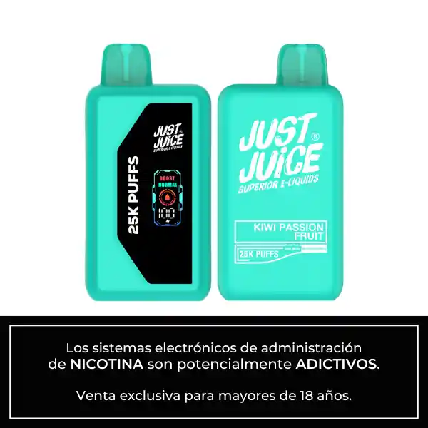 Just Juice Kiwi Passion Fruit combina la frescura ácida del kiwi con la intensidad tropical del maracuyá, creando un sabor vibrante, exótico y perfectamente equilibrado para un vapeo frutal lleno de energía.