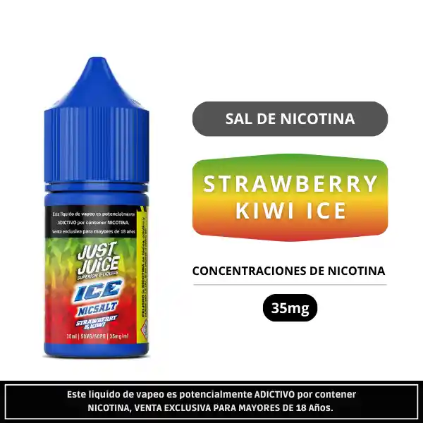 Just Juice Strawberry Kiwi Ice Salt 30ml es una sal de nicotina de 30ml que combina la dulzura de la frutilla con el toque ácido del kiwi y un refrescante final ice. Formulación 50VG50PG, ideal para pods, con 35mg de nicotina.