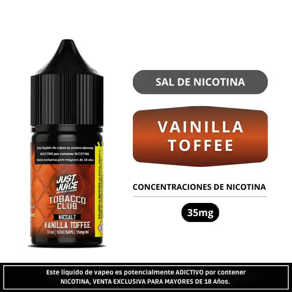 Just Juice Vanilla Toffee Salt 30ml es una sal de nicotina de 30ml que combina la suavidad de la vainilla con el dulzor intenso del toffee, creando un perfil cremoso y envolvente. Formulación 50VG50PG, ideal para pods, con 35mg de nicotina.