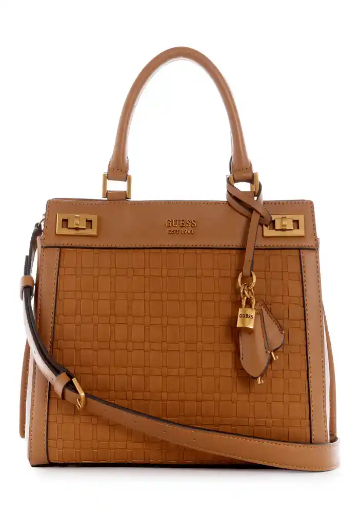 Modelo: WS787026. Cartera con doble asa de mano y correa ajustable al hombro. Diseño de tono liso con relieve a cuadros en parte frontal. Con bolsillos con cierre de cremallera. Materiales: 100% PU.