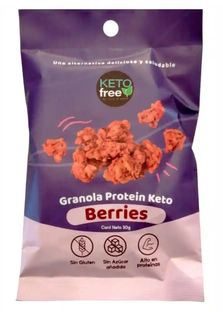 Granola Berries alta en proteínas y keto. No contiene gluten.