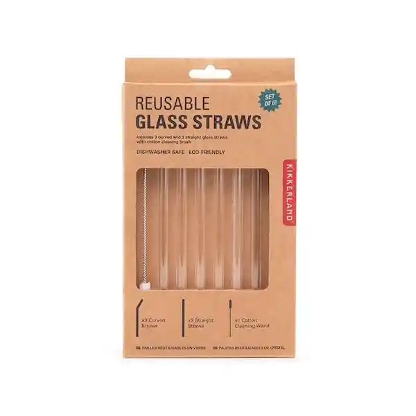 Set de 6 Bombillas de Vidrio Transparente. Tres Curvadas y Tres Rectas Para Que Escojas la Que Prefieras en Cada Momento. Incluye un Cepillo de Algodón Para Limpiarlas. Usando Estas Bombillas Reduces el Uso de Bombillas de Otros Materiales Como Plástico Que Perjudican al Medio Ambiente.