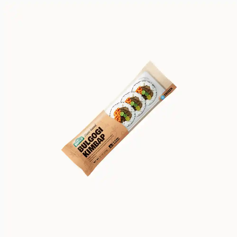 Hecho con arroz sazonado, vegetales frescos y carne de soya al estilo bulgogi (barbacoa coreana), todo envuelto en alga nori. Una opción 100% vegetal, lista para calentar y disfrutar.