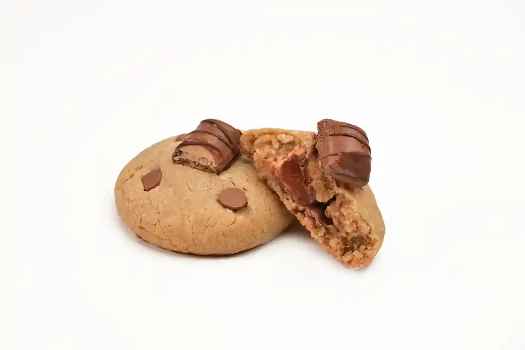 Cookie GIGANTE, a base de nuestra increíble masa de mantequilla, con topping y relleno de Kinder Bueno. Las SUPER Cookies son nuestra especialidad.