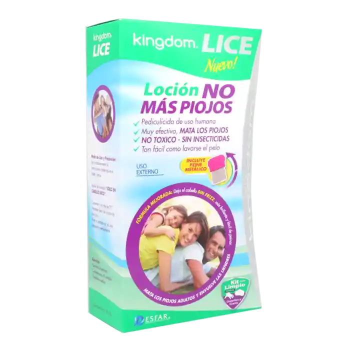 Es un producto no tóxico, libre de insecticida de gran efectividad en la eliminación y control de piojos y liendres. Incluye peine metálico. packing: Caja