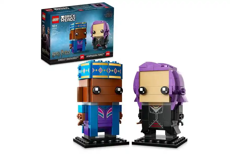 Los fans podrán revivir las escenas de Harry Potter y la Orden del Fénix™ mientras construyen las vistosas figuras LEGO® Harry Potter™ Kingsley Shacklebolt™ y Nymphadora Tonks™ (40618). El aspecto de estos populares personajes, desde el color rosa brillante del pelo de Nymphadora hasta el elegante gorro de Kingsley, se ha reproducido ingeniosamente al estilo LEGO BrickHeadz™. Este set LEGO, apto para mayores de 10 años, es perfecto para hacer un regalo divertido en cualquier ocasión a coleccionistas de objetos y fans del universo Harry Potter. • Figuras para construir de Kingsley Shacklebolt™ y Nymphadora Tonks™ (40618): Recrea el aspecto y el emblemático atuendo de 2 populares personajes del universo Harry Potter™ al estilo LEGO® BrickHeadz™. • Diseñados para exponerlos: Cada personaje construible mide aproximadamente 8 cm de altura, con la base incluida. • Idea de regalo para mayores de 10 años: Regala este set de construcción LEGO® de 250 piezas a un fan de Harry Potter™ como obsequio de cumpleaños, con motivo de una fecha festiva o en plan sorpresa.