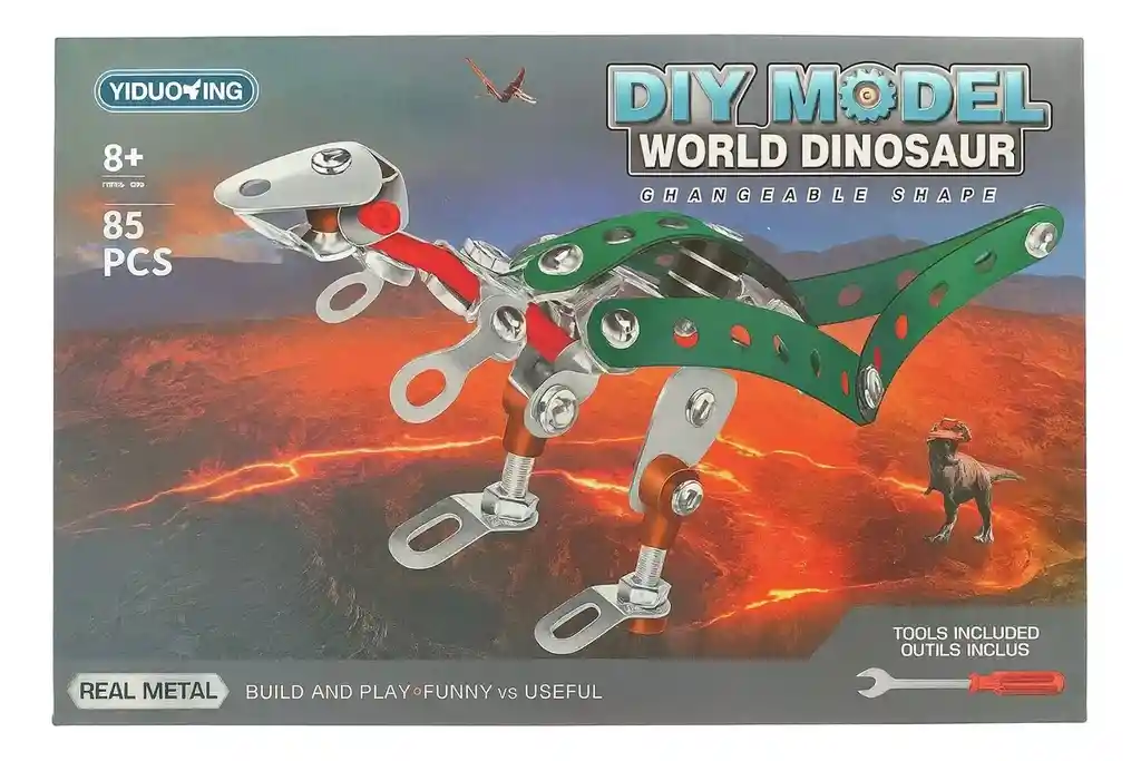 Kit de Construcción Metálico Dinosaurio - ¡Diversión y aprendizaje en un solo set! Arma tu propio dinosaurio de metal con este entretenido y educativo kit de 85 piezas. Ideal para niños desde los 8 años, este modelo fomenta la creatividad, la coordinación y el pensamiento lógico. Características: Material: Metal real Edad recomendada: 8 años en adelante Piezas incluidas: 85 Herramientas incluidas: destornillador y llave Cambio de forma: ¡puedes modificar el diseño! Medidas del dinosaurio armado: Largo: 14.5 cm Alto: 8.5 cm Ancho aproximado: 4.5 cm - Perfecto como regalo para pequeños ingenieros y fanáticos de los dinosaurios.