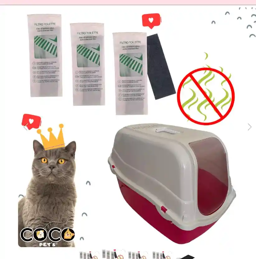 KIT BAÑO SANITARIO CUBIERTO ROMEO PARA GATOS + 3 FILTROSFUCSIA