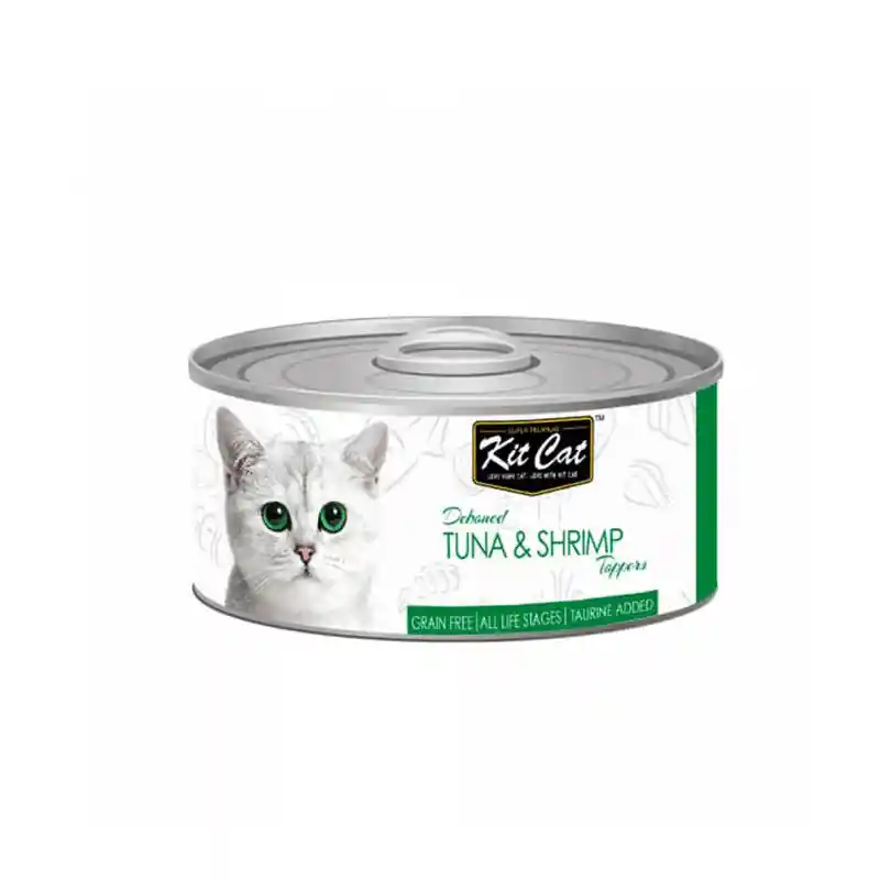 Kit Cat Deboned Tuna Shrimp Toppers es un alimento húmedo para gatos con carne deshuesada de calidad seleccionada que contiene vitaminas esenciales. También tiene una ración óptima de ácidos grasos omega-3 y omega-6 que promueven un corazón, una piel y un pelaje saludables para sus gatos. Además, esta dieta contiene fructooligosacáridos que promueven un tracto digestivo más saludable y taurina para unos ojos sanos. Con ingredientes naturales cuidadosamente seleccionados que no contienen colorantes ni conservantes añadidos. 100 % libre de cereales ofrece a su gato una nutrición saludable que equilibra el nivel de pH para respaldar un estilo de vida saludable, reduciendo el riesgo de cálculos renales e infecciones del tracto urinario. Latas de 80 g.