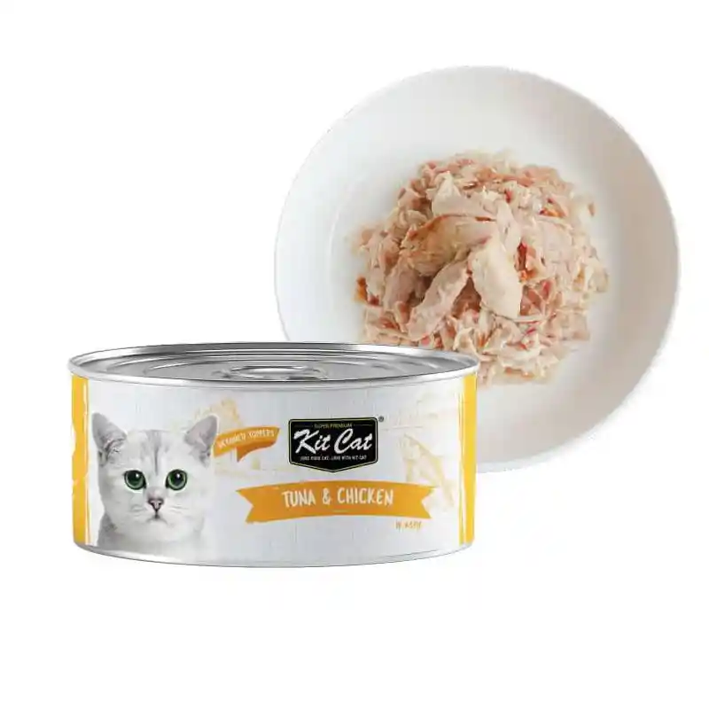 Kit Cat Deboned Tuna Chicken Toppers es un alimento húmedo para gatos con carne deshuesada de calidad seleccionada que contiene vitaminas esenciales. También tiene una ración óptima de ácidos grasos omega-3 y omega-6 que promueven un corazón, una piel y un pelaje saludables para sus gatos. Además, esta dieta contiene fructooligosacáridos que promueven un tracto digestivo más saludable y taurina para unos ojos sanos. Con ingredientes naturales cuidadosamente seleccionados que no contienen colorantes ni conservantes añadidos. 100 % libre de cereales ofrece a su gato una nutrición saludable que equilibra el nivel de pH para respaldar un estilo de vida saludable, reduciendo el riesgo de cálculos renales e infecciones del tracto urinario. Latas de 80 g.