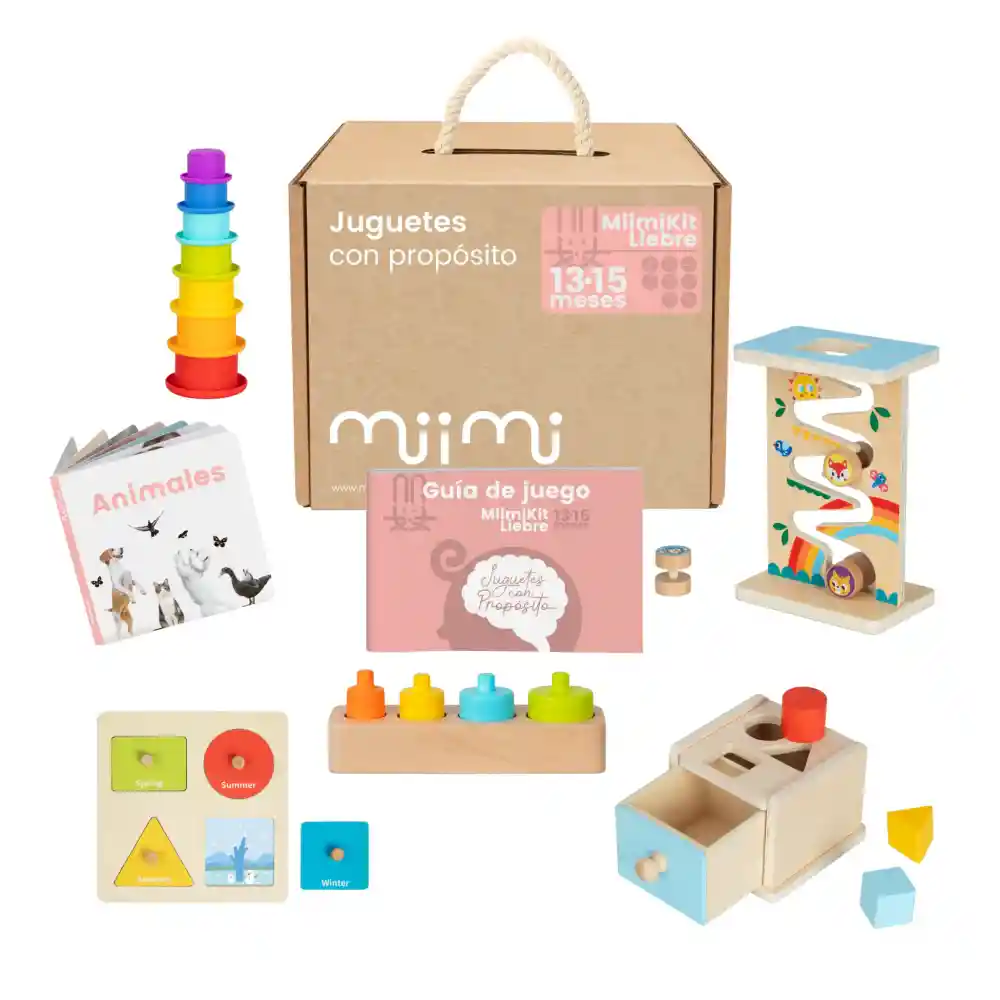 Kit de Juguetes MiimiKit Liebre 13 a 15 meses. El Kit de Juguetes MiimiKit Liebre está pensado para bebés de 13 a 15 meses. Inspirado en un adorable liebre, este set incluye juguetes que fomentan el desarrollo físico y sensorial, la autonomía, la comunicación y el lenguaje. Cada juguete está elaborado con materiales seguros y duraderos, ideales para las manos y la exploración de tu bebé. Los colores vibrantes, texturas variadas y sonidos atractivos están diseñados para capturar su atención y mantenerlo entretenido mientras aprende y crece. Además, este kit ayuda a promover la concentración, la creatividad y la memoria. Convierte cada momento de juego en una oportunidad de aprendizaje y diversión con MiimiKit Pulpo, el compañero perfecto para los primeros grandes descubrimientos de tu bebé.