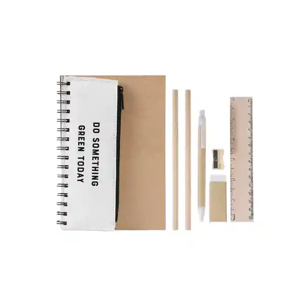 Kit de papelería eco friendly, es amigable con el medio ambiente, perfecto para llevar a tu oficina, escuela y trabajo.